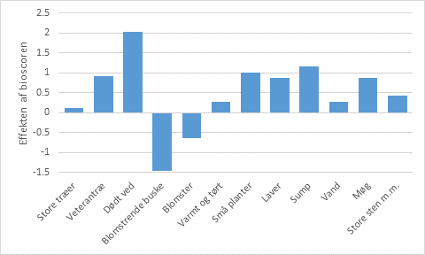 Den positive korrelation i undersøgelsen her mellem levestederne og områder med høj bioscore tyder på, at levestederne er vigtige for de truede arter. Vi ved også fra arbejdet med at beskrive levesteder for rødlistede arter, at de 12 undersøgte levesteder dækker en stor del af de levesteder, som er særligt vigtige for arter, som har det svært i Danmark i dag.