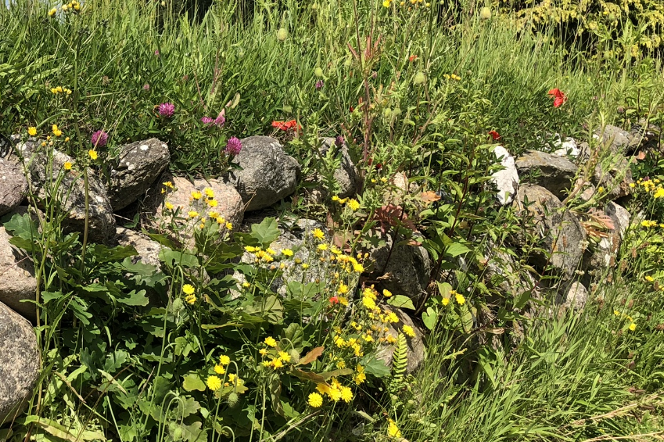 Levestedet “mange slags blomster” omfatter planter, der får lov at blomstre i sommerperioden. De blomstrende planter kan være både små og langsomtvoksende urter som smalbladet timian og håret høgeurt, store konkurrencestærke urter som gederams og gyldenris, blomstrende buske som pil og roser samt lianer (klatreplanter) som vedbend og kaprifolium (gedeblad).